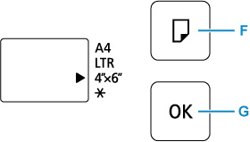 Press Paper Select button (F) to select a paper size according to the paper loaded on the rear tray and press OK button (G).