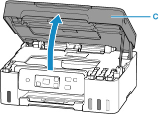 Åpne skanneenheten/dekselet (C).