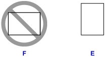 قم دائمًا بتحميل الورق بالاتجاه الطولي (E). يمكن أن يؤدي تحميل الورق بالاتجاه العرضي (F) إلى انحشار الورق.