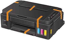 - Óvatosan bánjon vele, és ügyeljen arra, hogy a doboz vízszintes maradjon és NE forduljon fel vagy az oldalára, mert tönkremehet a nyomtató és kifolyhat a tinta a nyomtatóban.