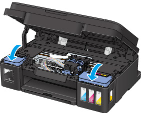 Mindig nyissa ki a (D)(E) tintatartályfedeleket.