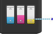 Înainte de a efectua curăţarea sistemului, verificaţi nivelul de cerneală rămasă pentru toate culorile. Dacă nivelul de cerneală rămasă este sub indicaţia cu un singur punct (a), reumpleţi rezervorul de cerneală pentru culoarea corespunzătoare. Efectuarea curăţării sistemului când nivelul de cerneală rămasă nu este suficient poate deteriora aparatul.