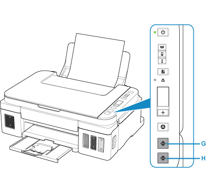 8. 黑白(Black)按鈕(G)或彩色(Color)按鈕(H)。