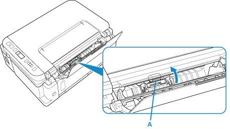 Dok okrećete valjke za ulaganje papira (A) koji se nalaze u stražnjoj ladici za više od dva okretaja očistite ih krpom koju ste nakon vlaženja dobro iscijedili.