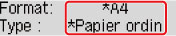 Une fois que vous avez chargé le papier dans le réceptacle arrière, l'écran d'enregistrement des informations sur le papier pour le réceptacle arrière apparaît sur l'écran LCD. Sélectionnez A4 ou Lettre pour Format:.