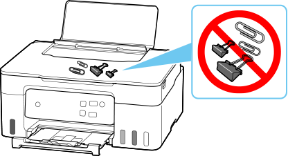 لا تضع أي أغراض فوق غطاء المستندات. فقد تسقط داخل الدرج الخلفي عندما يكون غطاء المستندات مفتوحًا، الأمر الذي يتسبب في عطل الطابعة. وكذلك، احرص على وضع الطابعة في الأماكن التي لا يُحتمل فيها سقوط أشياء عليها.