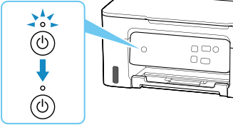 Kun irrotat virtajohdon pistorasiasta, paina KÄYTÖSSÄ (ON)-painiketta ja varmista sitten, ettei KÄYTÖSSÄ (ON)-merkkivalo pala. Virtajohdon irrottaminen siinä vaiheessa, kun KÄYTÖSSÄ (ON)-merkkivalo palaa tai vilkkuu, saattaa aiheuttaa tulostuspään kuivumisen tai tukkeutumisen. Myös tulostuslaatu voi heikentyä.