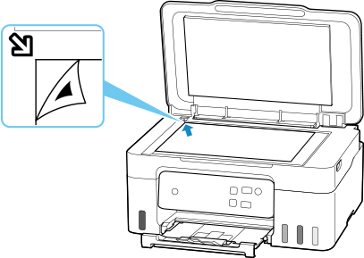 Aseta tulostuspään kohdistusarkki TULOSTETTU PUOLI ALASPÄIN ja kohdista arkin vasemmassa yläkulmassa oleva