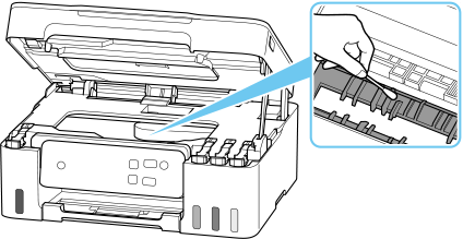 Nếu vấn đề vẫn không được giải quyết sau khi thực hiện làm sạch lại, các bộ phận nhô ra bên trong máy in có thể bị bẩn. Dùng miếng vải bông hoặc vật tương tự để lau sạch mực khỏi các bộ phận nhô ra.