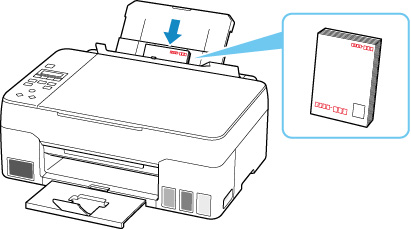 はがき、往復はがきに印刷するときは、印刷したい面を表にして、郵便番号を下に向けてセットしてください。