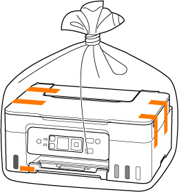 Lors du transport de l'imprimante, emballez l'imprimante dans un sac en plastique pour que l'encre ne coule pas.