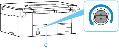 3. Retirez la vis du capot d'entretien (C).