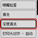 如果标准打印头清洗未改善打印质量,则深度清洗打印头。 深度清洗打印头比标准清洗打印头消耗更多墨水,因此请仅在必要时深度清洗打印头。