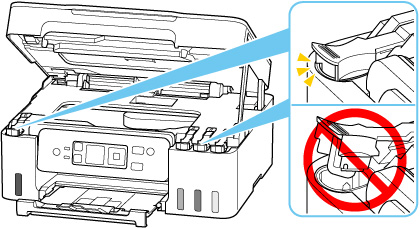• Prepričajte se, da so pokrovčki vložka za črnilne vložke pravilno zaprti. Če so pokrovčki vložka odprti, pravilno zaprite pokrovčke vložka.