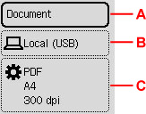 C: Prikaže zaslon z nastavitvami za optično branje.