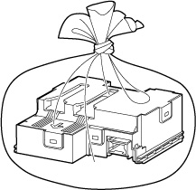 • Uporabljeno kartušo takoj položite v plastično vrečko, priloženo novi kartuši za vzdrževanje, vrečko pa nato zatesnite tako, da odprtino tesno zavežete in s tem preprečite puščanje črnila.
