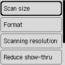 Ko optično prebirate tanek dokument, npr. časopis, lahko vidite tudi znake na hrbtni strani. Izberite možnost VKLOP (ON), če na optično prebranem dokumentu opazite, da se vidijo tudi znaki s hrbtne strani.