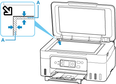 • Tiskalnik ne more optično brati na območju, označenem z diagonalnimi črtami, (A) (1 mm (0,04 palca) od robov steklene plošče).