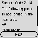 Selecteren wanneer u de papierinstellingen voor afdrukken/kopiëren wijzigt. Wijzig de papierinstellingen en probeer nogmaals af te drukken/te kopiëren.