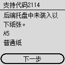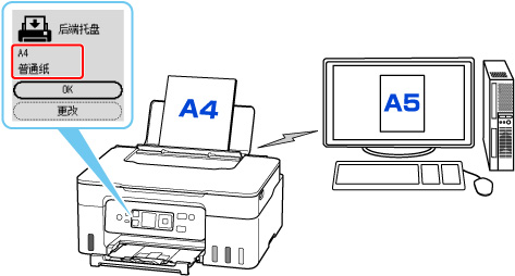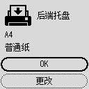 例如,如果用于打印/复印的纸张设置为A5,而打印机上注册的纸张信息为A4,则打印机将在后端托盘中装入的纸张上开始打印/复印,而不更改用于打印/复印的纸张尺寸设置。
