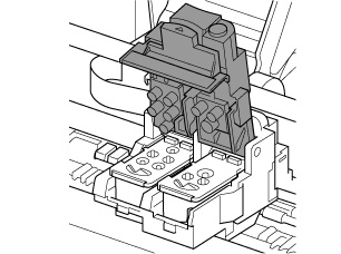 Installera skrivhuvudet C (färg) i den vänstra hållaren för skrivhuvud och skrivhuvudet B (svart) i den högra hållaren för skrivhuvud. Kontrollera etiketten och installera skrivhuvudena på rätt sätt.