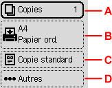 Vous pouvez modifier des paramètres de copie tels que l'agrandissement ou l'intensité.