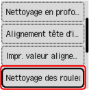 Les rouleaux d'entraînement du papier tournent pendant le nettoyage sans papier.