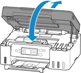 Zorg dat de tankkapjes van de inkttanks goed zijn gesloten. Als de tankkapjes open staan, sluit u de tankkapjes goed.