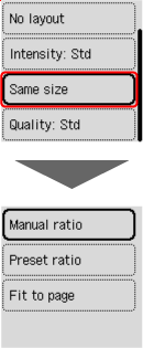 Selecteer de juiste verhouding voor de grootte van het origineel en het paginaformaat.