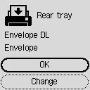 Om sidstorlek och medietyp som visas på på LCD-skärmen matchar storlek och typ för de kuvert som fyllts på i det bakre facket väljer du OK.
