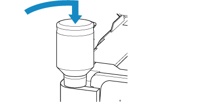 Nhẹ nhàng giữ lọ nạp mực thẳng đứng và từ từ nghiêng lọ để tháo khỏi đầu nạp mực.