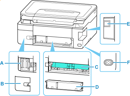 F: Connettore del cavo di alimentazione