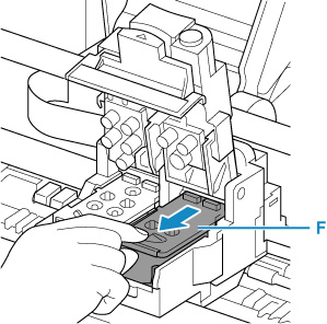 2. Tirare la testina di stampa (F) e spostarla leggermente verso di sé.