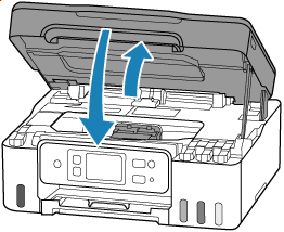 Trek aan de printkop (F) en beweeg deze iets naar u toe.