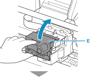 Prindeți capacul de blocare a capului de imprimare (E) de proeminențe și deschideți-l.