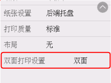 在复印待机屏幕中选择设置以显示打印设置屏幕,为双面打印设置选择双面,然后选择OK。