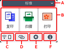 时,打印机已进入简易无线连接和智能手机连接的待机模式。 - E: 设置