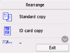 Galite pertvarkyti kopijavimo meniu elementų rodymo tvarką.