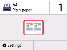 Selecteer Instellingen (Settings) in het standby-scherm voor kopiëren om het scherm met afdrukinstellingen weer te geven. Selecteer 2 op 1-kopie (2-on-1 copy) bij Indeling (Layout) en selecteer OK.