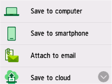 Scannen (Scan) op het HOME-scherm.Het scherm waarin u kunt selecteren waar de gegevens worden opgeslagen/doorgestuurd, wordt weergegeven.