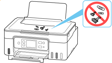 Leg geen voorwerpen op de documentklep. Deze kunnen in de achterste lade vallen wanneer de documentklep wordt geopend en ertoe leiden dat de printer niet meer naar behoren werkt. Zorg er ook voor dat u de printer op een locatie plaatst waar geen objecten in het apparaat kunnen vallen.