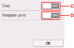 B: Als u AAN (ON) selecteert, kan de printer automatisch worden ingeschakeld wanneer een scanopdracht van een computer of afdrukgegevens naar de printer worden gestuurd.