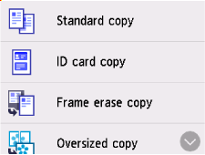 Berøringsskjermen går tilbake til skjermbildet med kopimenyen.