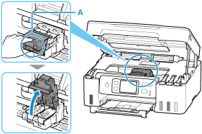 Deschideţi capacul de blocare a capului de imprimare folosind butonul (A) şi selectaţi Următor (Next).