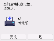 装入纸张后,触摸屏上会出现后端托盘的纸张设置确认屏幕。