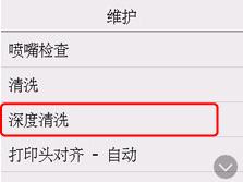 如果标准打印头清洗未改善打印质量,则深度清洗打印头。 深度清洗打印头比标准清洗打印头消耗更多墨水,因此请仅在必要时深度清洗打印头。
