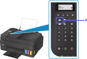 6. Wählen Sie mit der Taste Nach links Nach Rechts das Format des in das hintere Fach eingelegten Papiers. Drücken Sie dann die Taste OK.