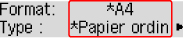 Après le chargement du papier sur le réceptacle arrière, l'écran d'enregistrement des informations sur le papier apparaît sur l'écran LCD. Sélectionnez A4 ou Lettre pour Format: et Papier ordinaire pour Type :, puis appuyez sur le bouton OK.