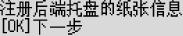 后端托盘中装入纸张后,LCD屏幕上会显示后端托盘的纸张信息注册屏幕。