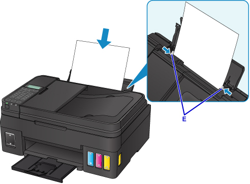 Igazítsa a papírvezetőket (E) a papír szélességéhez.